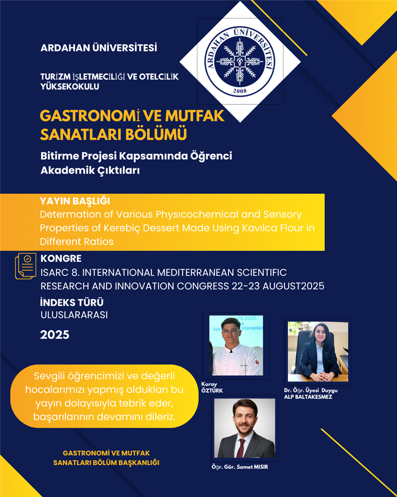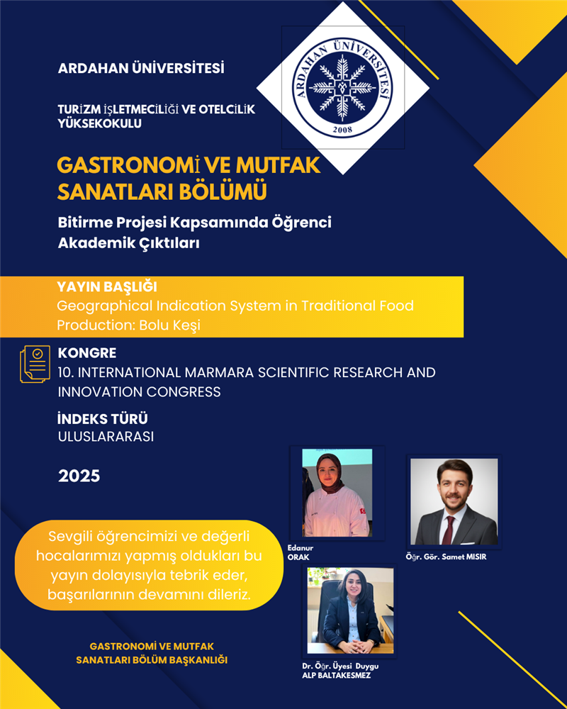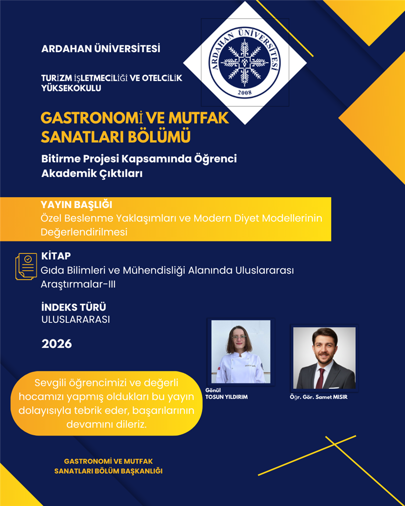 Sevgili öğrencilerimizi ve değerli hocalarımızı yapmış oldukları bu yayınlar dolayısıyla tebrik eder, başarılarının devamını dileriz